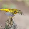 金色林鸲是鹟科、鸲属小型鸟类,体长12-15厘米。头顶至背黄橄榄绿色,眼先和头侧黑褐色,眉纹金橙黄色。肩、翅上小覆羽、腰、尾上覆羽和整个下体概为金橙黄色,两翅黑色。中央尾羽黑色,…全部>>