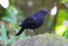 台湾紫啸鸫全长约280毫米。除胸、腹和翼的覆羽有蓝色光泽外,其余体羽均为紫蓝色。栖于海拔2000米以下的溪流附近。以昆虫、两栖类和鱼类为食。全部>>