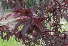 紫叶李是蔷薇科李属樱桃李的一个品种,别名红叶李、真红叶李等,落叶灌木或小乔木。其多分枝,枝条细长,暗灰色,小枝暗红色,无毛;冬芽卵圆形,紫红色;叶片椭圆形、卵形或倒卵形,极稀椭圆状披针形,…全部>>