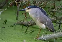 夜鹭是中型涉禽,体长46-60厘米。体较粗胖,颈较短;嘴尖细,微向下曲,黑色;胫裸出部分较少,脚和趾黄色;头顶至背黑绿色而具金属光泽;上体余部灰色;下体白色;枕部披有2-3枚长带状白色饰羽,下垂至背上,…全部>>