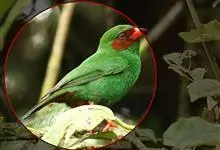 紫红头鹦鹉是鹦形目鹦鹉科的鸟类。鸟体为绿色,头部中间为红色,下颏下方延伸到脸颊下方,环绕整个颈部有一条黑色的环状羽毛,并连接一条蓝绿色的条状羽毛。…全部>>