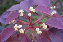 紫锦木是大戟科、大戟属的常绿乔木。叶圆卵形,主脉于两面明显,侧脉数对,边缘全缘,两面红色;花序生于二歧分枝的顶端,总苞阔钟状,裂片呈三角形,边缘具毛,腺体深绿色呈半圆形,…全部>>