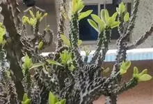 金刚纂,是大戟科大戟属的肉质灌木状小乔木。茎圆柱状,上部多分枝,叶片互生,少而稀疏,顶端钝圆,基部渐狭;花序二歧状腋生,苞叶膜质,总苞阔钟状,裂片半圆形,边缘具缘毛,雄花多枚;花期6-9月。…全部>>
