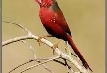 红梅花雀小型鸟类,体长9-10厘米。雄鸟通体朱红色,背、肩、胸等满布白色小斑点,两翅和尾黑褐色均具白色端斑,嘴红色,脚蜡黄色。雌鸟上体淡褐色或赭褐色,翅上中覆羽、大覆羽和内侧飞羽末端具白色斑点,…全部>>