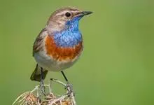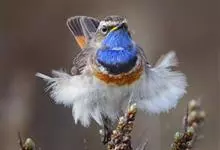 蓝点颏亦称“蓝喉歌鸲”,通称蓝靛颏儿。身体大小和麻雀相似,体长12-13厘米,体重17-18克。头部、上体主要为土褐色。眉纹白色。尾羽黑褐色,基部栗红色。颏部、喉部辉蓝色,下面有黑色横纹。下体白色。…全部>>