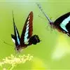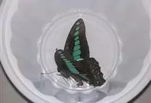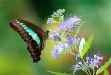 青带凤蝶Graphium sarpedon ,又名青凤蝶,是最普遍的中型凤蝶,飞行速度很快。青带凤蝶的翅膀中央有许多浅蓝色的斑点,很整齐地排列成一条直线。这些斑点由上而下逐渐变大,就像一条青色的带子。全部>>