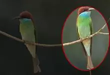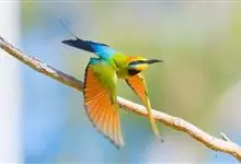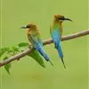 蓝喉蜂是蜂虎科蜂虎属鸟类。体长26-28厘米,嘴长而弯曲,有明显细长的中央尾羽。头部、颈部和背部为巧克力色,有黑色眼纹。喉部、腰部和尾羽为蓝色。腹部和两翼为绿色。幼鸟外观似成鸟,头部、颈部和背部为绿色,…全部>>
