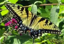 金凤蝶,是鳞翅目凤蝶科凤蝶属动物。金凤蝶为中型凤蝶,翅展70-84毫米,翅背面底色黑褐色,翅脉黑色,翅室具黄斑;前翅背面基部呈暗黄色,亚外缘为黑色,内具一列小黄斑;后翅背面亚外缘区具黑宽边,…全部>>