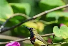 紫色蜜鸟为太阳鸟科花蜜鸟属的鸟类。分布于阿拉伯、伊朗、阿富汗、印度、尼泊尔、锡金、孟加拉、中南半岛、斯里兰卡以及中国大陆的云南等地,多栖息于海拔约950米以下的常绿阔叶林或村寨附近的丛林间。…全部>>