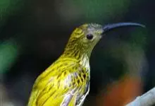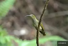 纹背捕蛛鸟:为太阳鸟科捕蛛鸟属的鸟类。是太阳鸟科中体型较大的一种,体重25-45克,体长160-210毫米。嘴粗长而尖且向下弯曲。上体橄榄黄色具黑色中央斑纹。下体淡黄白色满布黑色纵纹,尾具黑色次端斑。…全部>>