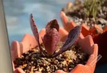 棒叶落地生根是景天科、落地生根属植物。茎直立、粉褐色。叶圆棒形,上表面有沟、粉色,有红褐斑。叶片交互对生,交叉排列成十字形。叶端锯齿上长有很小的幼株、落地后即可生根成活。原产非洲马达加斯加。…全部>>