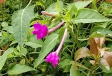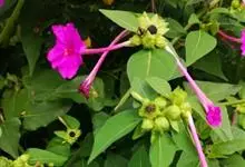 即紫茉莉,英文名:Four-o'clock,Marvel of Peru,为紫茉莉科、紫茉莉属多年生草本植物,一年生栽培。株高50~80cm。根粗壮,茎多分枝而散生。叶对生,卵形或心脏形。花数朵簇生…全部>>