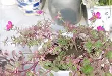 大花马齿苋:一年生草本,高10-30厘米。茎平卧或斜升,紫红色,多分枝,节上丛生毛。叶密集枝端,较下的叶不规则互生,叶片细圆柱形,无毛。花单生或数朵簇生枝端,直径2.5-4厘米,…全部>>