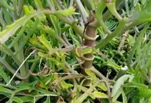 伽蓝菜是景天科伽蓝菜属植物。多年生草本,高20-100厘米。叶对生,中部叶羽状深裂,全长8-15厘米,裂片线形或线状披针形。聚伞花序排列圆锥状,长10-30厘米;苞片线形。花期3月。…全部>>
