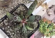 江户紫,景天科伽蓝菜属草本植物,是多年生草本花卉。花白色,但栽培中很少能见到花,常作观叶植物栽培。…全部>>
