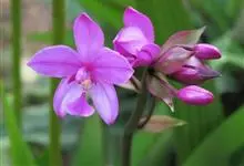 紫花苞舌兰:植株高达1米。假鳞茎卵状圆锥形,具3-5枚叶。叶质地薄,淡绿色,狭长,具折扇状的脉。花葶长达1米,下部具数枚筒状鞘;总状花序短,具约10朵花;花紫色;花瓣近椭圆形,比萼片大,…全部>>
