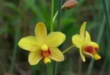 苞舌兰:假鳞茎扁球形,通常粗1-2.5厘米,被革质鳞片状鞘,顶生1-3枚叶。叶带状或狭披针形,两面无毛。花葶纤细或粗壮,长达50厘米,密布柔毛,下部被数枚紧抱于花序柄的筒状鞘;总状花序长2-9厘米,…全部>>