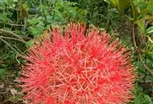 网球花是石蒜科,网球花属多年生草本植物。鳞茎球形,叶片长圆形,叶柄短,鞘状。花茎直立,实心,高可达90厘米,先叶抽出,淡绿色或有红斑;伞形花序具多花,花红色;花被管圆筒状,花被裂片线形,花丝红色,…全部>>