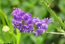 紫苜蓿,豆科苜蓿属多年生宿根草本植物,茎直立、丛生或匍匐,呈四棱形,多分枝;托叶较大,卵状披针形,小叶片呈倒卵状长圆形;花朵是成族状的总状花序;花梗呈尊钟状,花冠紫色花;果实螺旋形,…全部>>