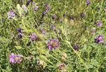 紫苜蓿,豆科苜蓿属多年生宿根草本植物,茎直立、丛生或匍匐,呈四棱形,多分枝;托叶较大,卵状披针形,小叶片呈倒卵状长圆形;花朵是成族状的总状花序;花梗呈尊钟状,花冠紫色花;果实螺旋形,…全部>>