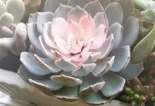 紫珍珠是景天科石莲花属的多年生肉质草本植物。植株中小型;叶片肉质,匙形,呈莲座状紧密排列;叶片粉紫色,叶缘呈粉白色,光照充足时颜色亮丽,不足时叶色会呈现深绿色或灰绿色,叶面光滑,被轻微白粉,…全部>>