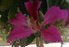 红花羊蹄甲,为豆科羊蹄甲属植物,别名艳紫荆、洋紫荆。半落叶乔木,高达了~10 m,叶草质,近圆形或阔心形,长8~13cm顶端开裂至全叶长1/4~13,裂片顶端圆。总状花序顶生或腋生,花冠紫红色,…全部>>