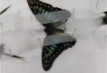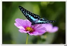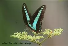 青带凤蝶Graphium sarpedon ,又名青凤蝶,是最普遍的中型凤蝶,飞行速度很快。青带凤蝶的翅膀中央有许多浅蓝色的斑点,很整齐地排列成一条直线。这些斑点由上而下逐渐变大,就像一条青色的带子。全部>>