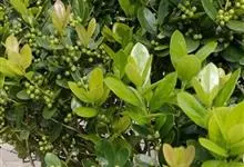 金叶女贞是木樨科女贞属木本植物。叶片为革,椭圆形或卵状椭圆形,新叶金黄色,老叶黄绿色至绿色;花为两性,呈筒状白色小花;果实为椭圆形,内含一粒种子,颜色为黑紫色。花期5—6月,果期10月。…全部>>