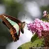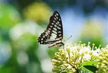 青带凤蝶Graphium sarpedon ,又名青凤蝶,是最普遍的中型凤蝶,飞行速度很快。青带凤蝶的翅膀中央有许多浅蓝色的斑点,很整齐地排列成一条直线。这些斑点由上而下逐渐变大,就像一条青色的带子。全部>>