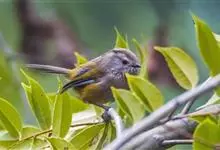 褐脸雀鹛是雀眉科、雀鹛属型鸟类,体长15-17厘米。头顶褐灰色具黑色侧冠纹,头侧皮黄褐色。上体和两翅表面橄榄褐色,尾褐色。下体浅茶黄色。虹膜灰色或褐色,嘴蓝灰色;嘴峰黑色,下嘴灰色,脚淡灰色。…全部>>