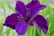 玉蝉花是鸢尾科鸢尾属的多年生草本植物,根状茎粗壮,斜伸;叶线形,中脉明显,长可达80厘米,宽约1厘米;花深紫色,直径约10厘米,花被管漏斗形,外花被裂片倒卵形,爪部细长,中央下陷呈沟状,…全部>>