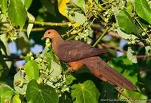 斑尾鹃鸠体长38厘米,是体大而尾长的褐色鹃鸠。背及尾满布黑色或褐色横斑。头灰,颈背呈亮蓝绿色。胸偏粉,渐至白色的臀部。雌鸟无亮绿色。背上横斑较密,尾部横斑有别于同地区的其他鹃鸠。不常见,…全部>>