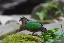 绿背金鸠体长约25厘米,是中等体型、尾甚短的地栖型斑鸠。下体粉红,头顶灰色,额白,腰灰,两翼具亮绿色。雌鸟头顶无灰色。飞行时背部两道黑色和白色的横纹清晰可见。主要栖息于2000米以下的山地森林中,…全部>>
