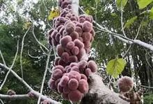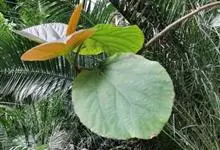 大果榕是桑科榕属的小乔木,株高可达10米;幼枝被柔毛;叶互生,宽卵状心形或近圆形;雄花无梗、匙形、花丝长,雌花生于雌株榕果内,子房白色;榕果簇生于树干基部或老茎短枝上、扁球形或陀螺形,…全部>>