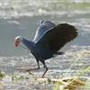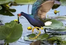 紫水鸡是秧鸡科紫水鸡属鸟类。下辖12个亚种,中国为云南亚种。体长40-45厘米,体羽大多为紫蓝色,翅表面和胸蓝绿色;尾下覆羽白色;嘴红色,粗大并与橙红色额甲相接;额甲宽阔,后缘呈截平状;雌雄鸟相似,…全部>>