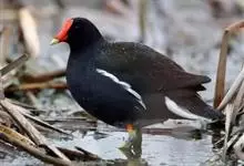 黑水鸡:是鹤形目、秧鸡科的鸟类,共有12个亚种。中型涉禽,体长24-35厘米。嘴长度适中,鼻孔狭长;头具额甲,后缘圆钝;嘴和额甲色彩鲜艳。翅圆形,第2枚初级飞羽最长,或第2枚和第3枚初级飞羽等长,…全部>>