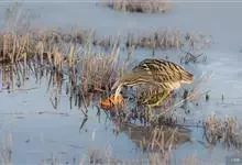 紫背苇鳽是鹭科、苇鳽属动物,为涉禽,体长约33厘米。头顶黑色,后头至尾上覆羽暗栗褐色;翅上覆羽橄榄黄色;下体浅棕黄色。多生活于水库和山脚边的稻田、芦苇丛、滩涂及沼泽草地,在西藏见于海拔2300米的农田,…全部>>
