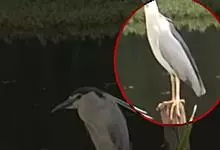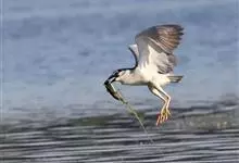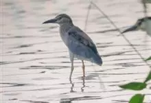 夜鹭是中型涉禽,体长46-60厘米。体较粗胖,颈较短;嘴尖细,微向下曲,黑色;胫裸出部分较少,脚和趾黄色;头顶至背黑绿色而具金属光泽;上体余部灰色;下体白色;枕部披有2-3枚长带状白色饰羽,下垂至背上,…全部>>