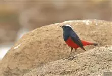 红头咬鹃: 体大,体长约33厘米,体重75-110克。头、颈暗绯红色;背、肩锈褐色。两翅黑色,翅上覆羽和内侧飞羽密被白色细虫蠹斑纹,初级飞羽黑色,外侧具白色羽缘;腰和尾上覆羽较多锈色。中央尾羽深栗色,…全部>>