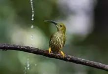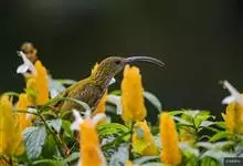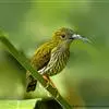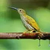 纹背捕蛛鸟:为太阳鸟科捕蛛鸟属的鸟类。是太阳鸟科中体型较大的一种,体重25-45克,体长160-210毫米。嘴粗长而尖且向下弯曲。上体橄榄黄色具黑色中央斑纹。下体淡黄白色满布黑色纵纹,尾具黑色次端斑。…全部>>