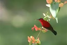 黄腰太阳鸟共有16个亚种,小型鸟类,体长10-15厘米。嘴细长而向下弯曲,雄鸟额和头顶前部金属绿色,头顶后部橄榄褐色。其余头、颈、背、肩、颏、喉、胸以及翅上中覆羽和小覆羽概为红色,腰黄色,…全部>>
