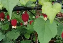 红萼苘麻是锦葵科、苘麻属常绿软木质灌木,叶绿色,长5-10厘米,心形,叶端尖,叶缘有钝锯齿,有时分裂,有细细的叶柄;叶互生,掌状叶脉;花单生于叶腋,具长梗,下垂;花萼红色,半套着大约4厘米长的花瓣,…全部>>