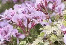 家天竺葵是牻牛儿苗科、天竺葵属多年生草本;株较高;茎直立,基部木质化,被开展长柔毛;叶互生三角状,宽卵形或肾形,基部心形或平截,具不规则锐锯齿;花梗长柔毛和腺毛;萼片披针,花冠粉红、淡红、深红或白色。…全部>>