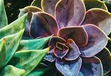 紫珍珠是景天科石莲花属的多年生肉质草本植物。植株中小型;叶片肉质,匙形,呈莲座状紧密排列;叶片粉紫色,叶缘呈粉白色,光照充足时颜色亮丽,不足时叶色会呈现深绿色或灰绿色,叶面光滑,被轻微白粉,…全部>>