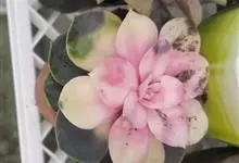 紫珍珠是景天科石莲花属的多年生肉质草本植物。植株中小型;叶片肉质,匙形,呈莲座状紧密排列;叶片粉紫色,叶缘呈粉白色,光照充足时颜色亮丽,不足时叶色会呈现深绿色或灰绿色,叶面光滑,被轻微白粉,…全部>>