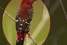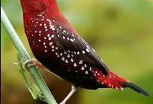 红梅花雀小型鸟类,体长9-10厘米。雄鸟通体朱红色,背、肩、胸等满布白色小斑点,两翅和尾黑褐色均具白色端斑,嘴红色,脚蜡黄色。雌鸟上体淡褐色或赭褐色,翅上中覆羽、大覆羽和内侧飞羽末端具白色斑点,…全部>>