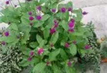 千日红,是苋科千日红属的一年生直立草本植物;茎粗壮,有分枝,枝略成四棱形,有灰色糙毛,幼时更密,节部稍膨大;叶片纸质,长椭圆形或矩圆状倒卵形;花果期6-9月。花色艳丽有光泽,花干后而不凋,经久不变,…全部>>