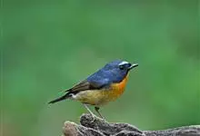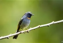 棕胸蓝姬鹟:属小型鸣禽,体长10-13厘米,体重6-10克,是一种体型很小的灰蓝及棕色鹟,雌雄羽色不同,雄鸟羽色艳丽,雌鸟羽色暗淡。雄鸟上体深蓝色,胸橙黄色,下腹灰白色。亚成鸟具褐色斑驳。…全部>>