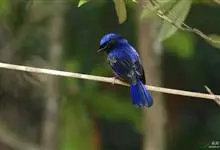 小仙鹟:体长11-13厘米,是一种深色鹟。雄鸟深蓝,脸侧及喉黑,臀白,前额、颈侧及腰为闪辉蓝色。与大仙鹟的区别在体型较小,胸蓝色,臀白色。雌鸟褐色,翼及尾棕色,颈侧具闪辉蓝色斑块,喉皮黄,项纹浅皮黄。…全部>>
