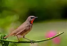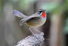 红点颏:是鸟纲、鹟科的鸣禽。又名西伯利亚歌鸲。体长14-17厘米,体重16-27克。雄鸟头部、上体主要为橄榄褐色。眉纹白色。颏部、喉部红色,周围有黑色狭纹。胸部灰色,腹部白色。雌鸟颏部、喉部不呈赤红色,…全部>>